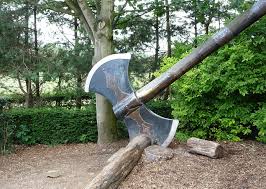 An ax or axe is a tool with a bladed head used for cutting and chopping.
